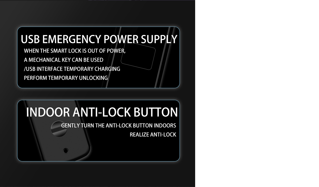 Open mode:Fingerprint/Password/Swipe/Key/Bluetooth(optional)WiFi(optional)